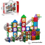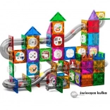 Duży zestaw świecących magnetycznych klocków. Zawiera 168 elementów. Świecąca kulka.