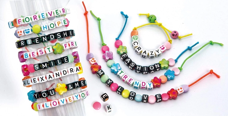 Szalone bransoletki z wiadomością. Możesz na nich stworzyć swoje imię lub ulubione napisy.