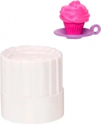 Urocza różowa babeczka na talerzyku jest częścią zestawu i idealnie mieści się w ręce Barbie, co wzbogaca zabawę.