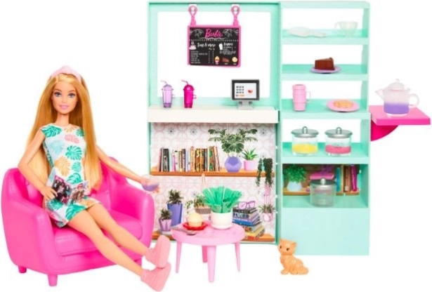 Pobaw się w kawiarnię z Barbie, która ma w zestawie stylową sukienkę z dekoracyjnym motywem liści. Towarzyszyć Ci będzie również mała figurka kotka, która dodaje całej scenerii uroku. Zmiana koloru i zabawa w smakach w czasie gry jest prosta dzięki magicznemu czajnikowi.