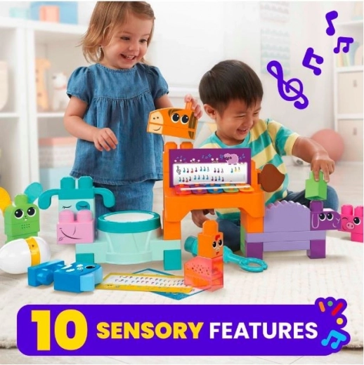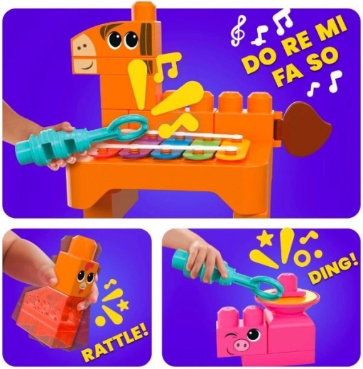 Odkryj magię budowania z klockami Mega Bloks, które wspierają rozwój sensoryczny dzieci. Ten przedszkolny zestaw konstrukcyjny zawiera 45 dużych klocków odpowiednich dla dzieci w wieku 1–3 lat. Zwierzątka, takie jak konik, krówka czy kurczątko, każde oferuje własny element muzyczny, jak ksylofon, bębenek czy grzechotki. Dzieci nie tylko będą się świetnie bawić, ale także nauczą się grać aż 6 piosenek, co rozwija ich umiejętności motoryczne i poznawcze.