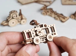 Odkryj zabawny zestaw mini modeli z drewnianej sklejki od marki UGEARS – traktor, bolid, ciągnik siodłowy i tramwaj. Każdy brelok skrywa prostą mechanikę, która umili czekanie i pomoże rozładować napięcie. Wszystkie zabawki mają pętelkę do zawieszenia na kluczach lub plecaku, a złożysz je łatwo dzięki szczegółowej instrukcji.