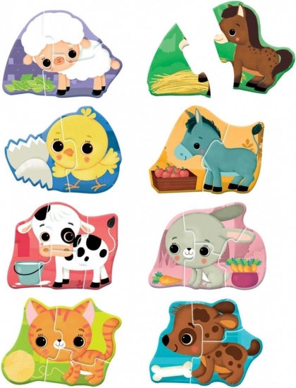 Odkryj zabawne puzzle dla najmłodszych z motywami uroczych zwierzątek z farmy. Zestawy o różnym poziomie trudności (łączenie 2, 3 i 4 elementów) wspierają małą motorykę, spostrzeganie kształtów oraz koncentrację. Ilustracje są kolorowe i atrakcyjne, co motywuje dzieci do zabawy. Produkt jest bez baterii i odpowiedni już od 1 do 3 lat.