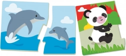 Odkryj pierwsze puzzle, które w zabawny sposób uczą dzieci rozpoznawać zwierzęta i ich młode. Duże, solidne elementy są zaprojektowane dla małych rączek, a dzięki profilowanym wycięciom umożliwiają łatwą autokorektę – dziecko samo rozpozna, czy elementy do siebie pasują.