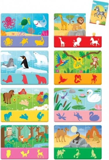 Żywe obrazki z dżungli, oceanu i sawanny zachęcają do poznawania świata zwierząt i do wielokrotnej zabawy.