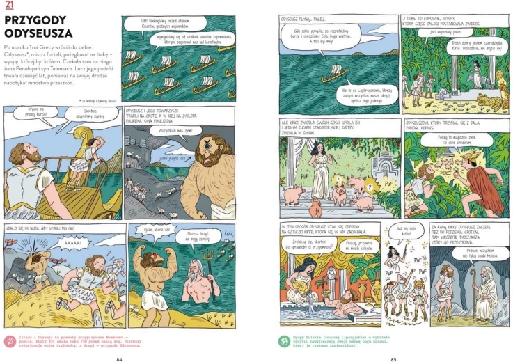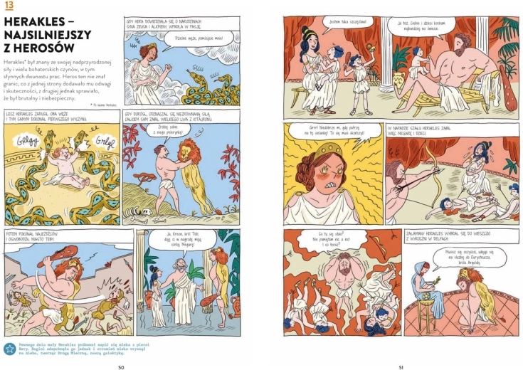Poznaj przygody bogów i herosów mitologii greckiej i rzymskiej opowiedziane w formie komiksu – od stworzenia świata przez Gaję i Uranosa po założenie Rzymu przez Romulusa i Remusa.