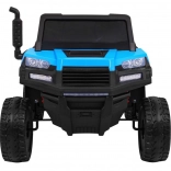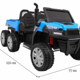 Model zaprojektowano dla dwojga dzieci – szerokie siedzenie z eko skóry i elementy bezpieczeństwa dbają o wygodę i spokój jazdy. Tylna wywrotna skrzynia (kipper) z otwieraną tylną burtą zachęca do zabawy w farmę. Rodzice docenią zdalne sterowanie 2.4 GHz z trzema prędkościami i awaryjnym zatrzymaniem. Panel audio z MP3/SD/AUX/Bluetooth oraz dźwięki w kierownicy ucieszą małych kierowców.
