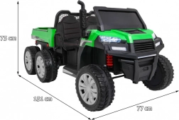 Farmer Truck to przestronny elektryczny samochód dla dzieci z sześcioma kołami i dwoma siedzeniami z ekoskóry, zaprojektowany dla stabilności, komfortu i zabawy. Dzięki dwóm akumulatorom 12 V/7 Ah oraz czterem silnikom 35 W radzi sobie z nierównym terenem i dłuższymi przejażdżkami. Wywrotka i otwierana tylna burta zamieniają każdą jazdę w przygodę.