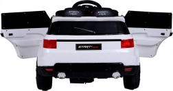 Stylowy dziecięcy elektryczny samochodzik SUV START RUN w białym kolorze oferuje dwa silniki 2 × 30 W, pilot 2,4 GHz z przyciskiem STOP, światła LED oraz rozbudowany panel audio (MP3/USB/SD/AUX). Dzięki otwieranym drzwiom z blokadą, pasom bezpieczeństwa i amortyzatorom z przodu i z tyłu dzieci cieszą się komfortową i bezpieczną jazdą.