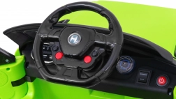 Mali kierowcy docenią przednie i tylne światła LED, otwierane drzwi z blokadą oraz wygodne siedzenie z pasami. Zabawkę uatrakcyjnia panel multimedialny z MP3, USB, SD i AUX, a także melodie i klakson na kierownicy. Dzięki plastikowym kołom z amortyzatorami (2 z przodu, 2 z tyłu) pojazd jest gotowy do jazdy w domu i na zewnątrz.