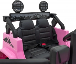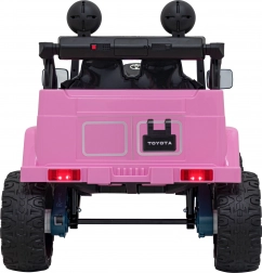 Stylowy dziecięcy elektryczny samochodzik TOYOTA FJ CRUISER w kolorze różowym oferuje napęd 4x4, miękkie koła EVA, zdalne sterowanie 2,4 GHz oraz bogate funkcje audio (MP3/USB/Bluetooth). Dzięki płynnemu startowi, przednim i tylnym światłom LED oraz pasom bezpieczeństwa zapewnia dzieciom bezpieczną i świetną zabawę w domu i na zewnątrz.