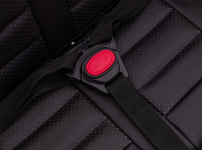 Mali kierowcy docenią płynny rozruch, wybór 2 prędkości oraz jazdę do przodu/do tyłu. Bogate oświetlenie LED (przednie, tylne i górne) oraz podświetlany przycisk startu z efektem dźwięku silnika dopełniają realistyczne wrażenia. Wnętrze oferuje czarne siedzenie z ekoskóry z pasami, otwierane drzwi i przejrzysty panel z MP3/USB/AUX/Bluetooth oraz wbudowanymi melodiami.