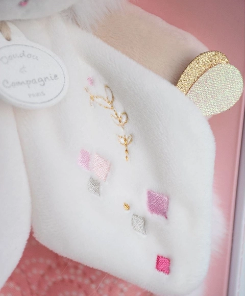 Pluszowy króliczek został zaprojektowany tak, aby był miękki i przyjemny w dotyku, co czyni go idealnym towarzyszem dla najmłodszych. Króliczek ma atrakcyjny beżowy kolor z różowym brzuszkiem, co nadaje mu uroczy wygląd. Dostarczany jest w eleganckim pudełku ozdobnym, które samo w sobie jest małym dziełem sztuki, co sprawia, że ten produkt jest idealnym prezentem.
