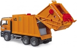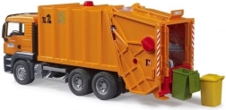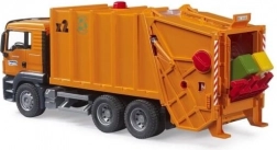 Śmieciarka Bruder MAN TGS zaprojektowana jest z dbałością o realistyczne detale, w tym otwierane drzwi i obrotowy mechanizm na odpady.
