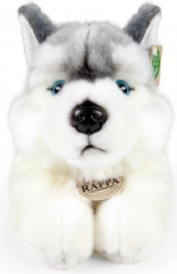 Ten leżący husky o długości około 30 cm jest niezwykle miękki w dotyku, a dzięki dopracowanym detalom wygląda bardzo realistycznie. Bezpieczna ekologiczna wypełnia z recyklingowanych butelek PET jest w dotyku nie do odróżnienia od zwykłej wypełni i posiada atesty także dla najmłodszych.