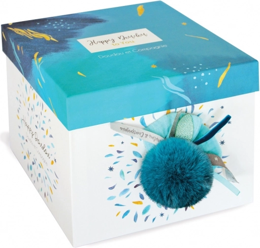 Mięciutki pluszowy króliczek DOUDOU o wysokości 25 cm z granatową pomponiką to idealny towarzysz dla niemowląt i starszych dzieci. Oferuje kojący dotyk, materiały premium, bezpieczeństwo zgodne z normami CE oraz łatwą pielęgnację. Świetny jako prezent w eleganckim pudełku.