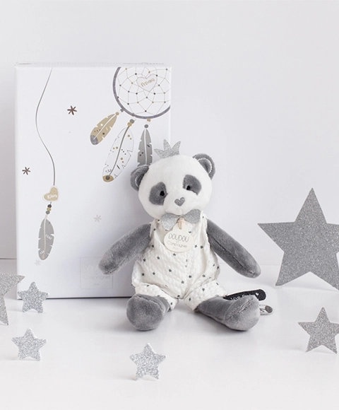 Urocza pluszowa panda z zestawu prezentowego Doudou ucieszy maluszki od urodzenia. Wykonana z mięciutkiego, premium pluszu, zapewnia delikatność, komfort i kojący uścisk, jest odpowiednia od urodzenia i spełnia europejskie normy CE. Świetny pomysł na prezent – zapakowana w eleganckie pudełko upominkowe.