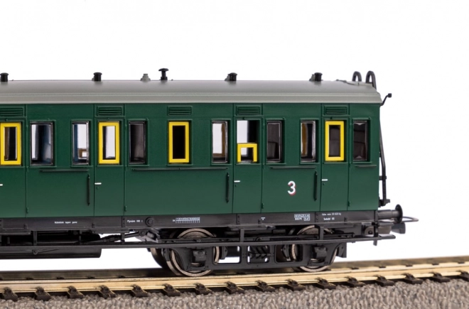 Ten precyzyjnie wykonany wagon osobowy ČSD z ery III jest idealny do historycznych składów i kolekcji. Wierne proporcje, delikatne nadruki oraz funkcjonalne detale, takie jak kabina hamulcowego, gwarantują autentyczny wygląd na makiecie.