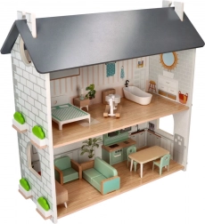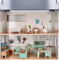 Domek dla lalek został zaprojektowany tak, aby wspierać kreatywność i zabawy wyobraźni. Składa się z dwóch pięter, gdzie dzieci mogą bawić się, tworząc własne historie i scenariusze. Drewniany materiał zapewnia długowieczność i zrównoważenie.