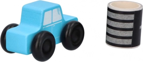 W zestawie znajduje się drewniane autko i motyw drogi, które dodają ćwiczeniom nowego wymiaru i ruchowej zabawy.