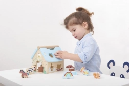 Każdy detal domku, od niebieskiego dachu po barwne wzory, ma bawić dzieci i wspierać ich rozwój. Wygląd jest przyjazny, z realistycznymi figurkami zwierząt, które pobudzają wyobraźnię.
