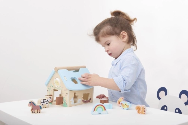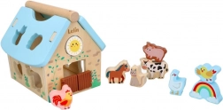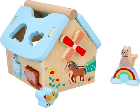 Ten drewniany domek ze zwierzątkami to idealna zabawka wspierająca rozwój dzieci od 12 miesięcy. Został zaprojektowany tak, aby inspirować do nauki poprzez zabawę. Domek zawiera różne kolorowe kształty i figurki zwierząt, które można dopasowywać do odpowiednich otworów, co poprawia koordynację wzrokowo‑ruchową.