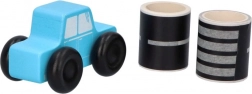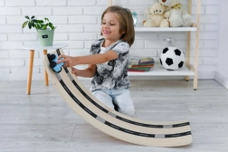 Deska zawiera naklejoną drogę, po której dołączone autko może jeździć, co poszerza możliwości zabawy.