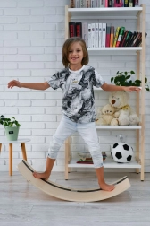 Ta deska balansowa to świetny wybór dla dzieci, które chcą rozwijać koordynację i siłę podczas zabawy. Deska ma zakrzywiony kształt i jest wykonana z wysokiej jakości drewna, co zapewnia stabilność i trwałość. Z maksymalnym obciążeniem 80 kg jest idealna do różnych aktywności.