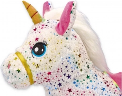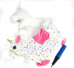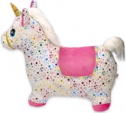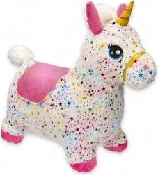 Skaczący jednorożec łatwo się pompuje dołączoną ręczną pompką. W kilka chwil gotowy do zabawy – sprężyste rdzeń, wygodny chwyt i wymiary 60 × 50 × 25 cm.