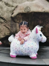 Zamień każde dziecięce popołudnie w magiczną przejażdżkę. Nadmuchiwany skaczący jednorożec z miękkim pokrowcem zapewnia bezpieczną i radosną aktywność dla małych skoczków – miękka powierzchnia jest przyjemna w dotyku, a nadmuchiwane rdzeń gwarantuje sprężystość i stabilność. Dzięki wysokości siedziska 28 cm wsiadanie jest wygodne także dla młodszych dzieci.