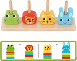 Ta urocza gra do układania łączy zabawę z nauką. Dzieci mogą dowolnie łączyć kolorowe elementy i tworzyć ulubione zwierzęce postacie lub korzystać z dołączonych kart z wzorami. Wysokiej jakości wykonanie z drewna FSC® zapewnia trwałość i bezpieczeństwo podczas codziennej zabawy.