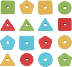 Różne kształty i otwory wspierają precyzyjny chwyt, koordynację ręka–oko oraz rozpoznawanie kolorów i kształtów już od 18. miesiąca.