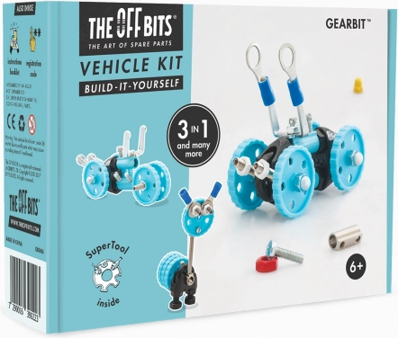 OFFBITS GearBit to zabawny i edukacyjny zestaw konstrukcyjny, który wprowadza dzieci w świat STEAM – nauki, technologii, inżynierii, sztuki i matematyki. Mali konstruktorzy mogą łączyć elementy, kółka i łączniki, aby stworzyć wytrzymały pojazd gotowy w teren lub zupełnie nowe, autorskie projekty według własnej fantazji.