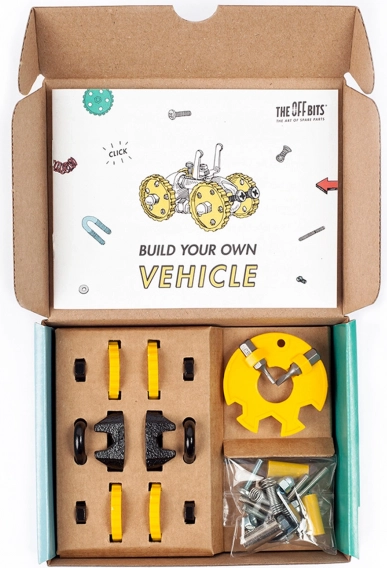 OFFBITS BlazeBit to oryginalny zestaw inspirowany kulturą ponownego użycia, który zamienia śrubki, kółka i sprytne łączniki w ruchome modele. Zbuduj BlazeBit, MotorBit, AnimalBit lub wymyśl własną maszynę – wyobraźnia nie zna granic.