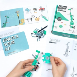 Zestaw zaprojektowano tak, aby wspierał motorykę małą, wyobraźnię przestrzenną, rozwiązywanie problemów oraz kreatywną zabawę. Dodatkowo jest kompatybilny z powszechnymi materiałami z gospodarstwa domowego – spróbuj dodać karton, dodatkowe śrubki czy inne drobiazgi i stwórz naprawdę niepowtarzalne modele.
