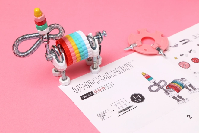 Odkryj magiczny zestaw konstrukcyjny The OffBits JednorożecBit, który pozwoli Ci zbudować aż trzy oryginalne modele oraz nieskończenie wiele własnych projektów. W zestawie znajdziesz kolorowe nakrętki, śrubki, profilowane bity oraz narzędzia do łatwego montażu. Wspiera kreatywność, motorykę małą i logiczne myślenie, a także świetnie nadaje się dla małych entuzjastów STEAM.