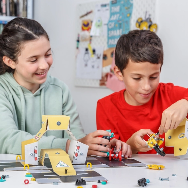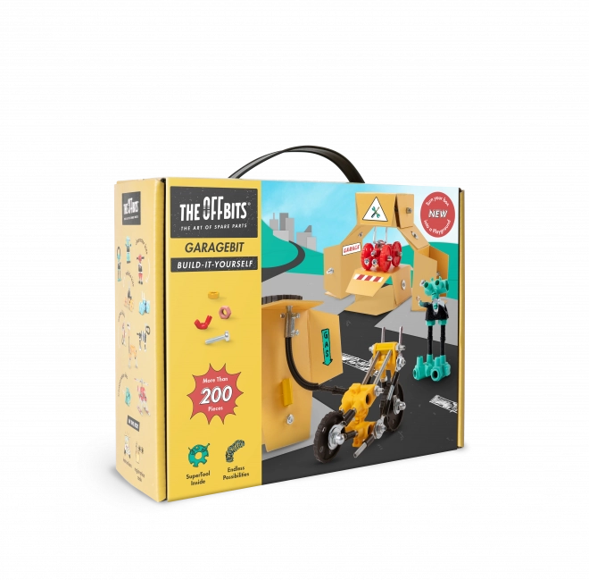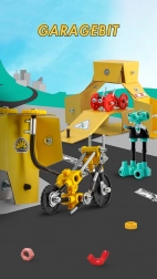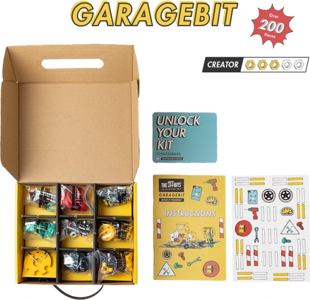 Utrzymuj swoje pojazdy w doskonałej kondycji dzięki GarageBit, który zawiera kolorowe nakrętki, śruby, formowane elementy i naklejki. Ten zestaw to nie tylko część zabawy, ale kompletnie funkcjonalny garaż, stacja paliw i warsztat. Rozwijaj kreatywność i wyobraźnię, tworząc trzy modele i wiele innych według własnych pomysłów.