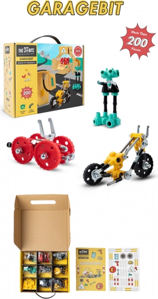 Zestaw GarageBit to świetny wybór, by wspierać naukę, technologię, inżynierię, sztukę i matematykę (STEAM) u młodych osób. Pomaga także w rozwoju małej motoryki, wyobraźni przestrzennej i umiejętności rozwiązywania problemów.