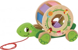 Odkryj radość i naukę z tą ciągającą żółwią, która stanie się wspaniałym towarzyszem Twojego dziecka. Ta innowacyjna zabawka działa jako sorter kształtów i oferuje sześć otworów do wkładania różnych kształtów, w tym jednego dużego i pięciu mniejszych. Dzięki sznurówe z przodu dzieci mogą łatwo ciągnąć ją za sobą, ciesząc się chwilami pełnymi ruchu.