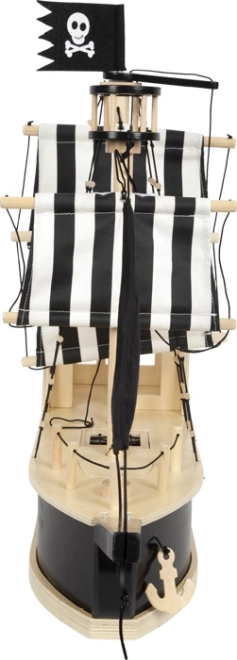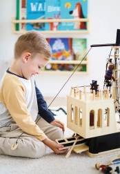 Ten duży piracki statek został zaprojektowany do pełnych przygód, odkrywczych zabaw. Dzięki przemyślanym funkcjom – podnoszonym i opuszczanym żaglom, ruchomej kotwicy, drzwiom zapadkowym oraz tylnemu lukowi – oferuje niezliczone scenariusze zabawy. Statek wykonano z wysokiej jakości drewna w połączeniu z tkaniną i filcem, co zapewnia trwałość i długą żywotność.
