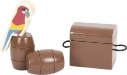 - statek piracki, 2 piratów, łódka, rekin, papuga, skrzynia ze skarbem, 2 beczki, trap, flaga, działo + 3 filcowe kule