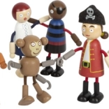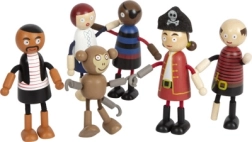 Zestaw zawiera sześć drewnianych figurek: kapitana piratów, czterech członków załogi i małpę. Idealny do rozszerzenia pirackiego świata.