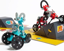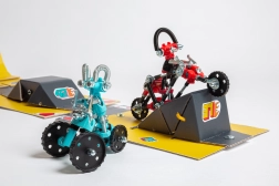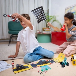 Niezwykle ważną częścią OffBits RaceBit jest kompatybilność z codziennymi przedmiotami, co daje dzieciom możliwość tworzenia własnych, unikalnych wynalazków z użyciem zwykłych materiałów. Opakowanie zestawu zamienia się dodatkowo w tor wyścigowy, co podnosi poziom zabawy i zajmuje dzieci na długie godziny.