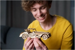 Spraw sobie radość ikonicznym modelem roadstera z połowy XX wieku. UGEARS Rapid Mouse składa się z 226 elementów i po złożeniu oferuje imponujące funkcje mechaniczne: nakręcanie sprężynowego silnika do sześciu kliknięć zapadki, możliwość cofania typu pull-back na równej powierzchni oraz sterowność dzięki regulowanym przednim kołom. Gumowe opony zapewniają świetną trakcję i łatwą wymianę.