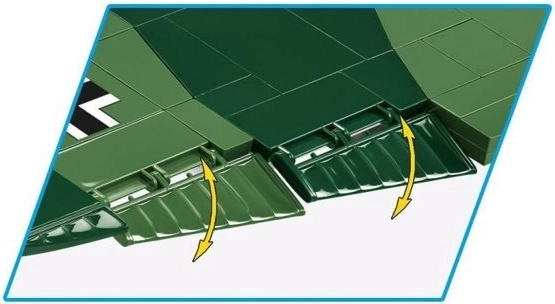 Obracające się śmigła, ruchome lotki, otwierane komory bombowe oraz zdejmowane bomby dodają modelowi dynamiki i możliwości scenicznej prezentacji.