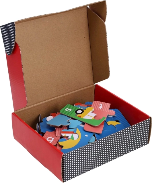 Wykonane z ekologicznych materiałów, ten produkt nie tylko poszerza zasób słownictwa, ale także rozwija zdolności poznawcze i koncentrację. Puzzle nadają się także do samodzielnej zabawy, wspierają logiczne myślenie i poprawiają motorykę Twoich dzieci. Początki w nauce angielskiego nigdy nie były zabawniejsze!
