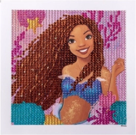 Malowanie diamentami Mała Syrenka – 29×29 cm. Zestaw zawiera 1 płótno z motywem syrenki, diamentowe kamyczki oraz aplikator.