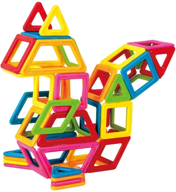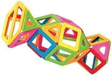 Magnetyczne wielokąty łączą budowanie 2D i 3D. Dzieci podczas zabawy ćwiczą małą motorykę, wyobraźnię przestrzenną oraz podstawy geometrii i logiki.