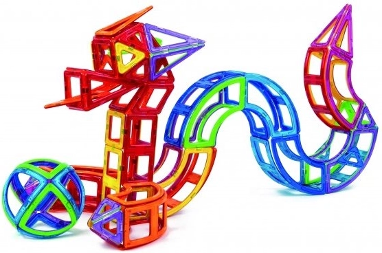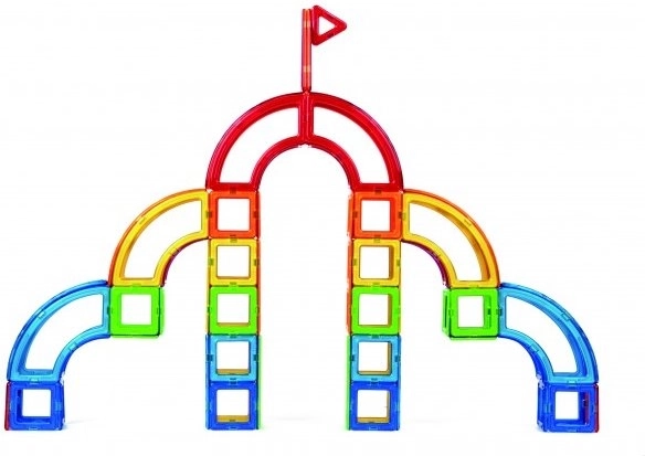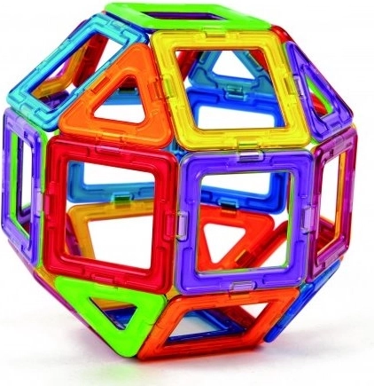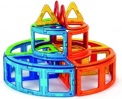 Magformers Creative to prawdziwa gratka dla nieokiełznanej wyobraźni dzieci i dorosłych. Liczba oraz kolorowa i kształtowa różnorodność elementów dają przestrzeń do tworzenia najbardziej śmiałych konstrukcji. Dzięki większemu udziałowi obu typów trójkątów zestaw nadaje się także do modelowania drobniejszych detali. Świetnie opracowany dołączony booklet posłuży jako inspiracja. Zestaw zawiera 20 kwadratów, 12 trójkątów, 2 pięciokąty, 4 romby, 8 długich trójkątów, 4 podwójne prostokąty, 8 wycinków koła, 4 trapezy, 8 długich łuków, 4 łuki, 4 potrójne prostokąty i inne. Odpowiednie dla dzieci od 3 lat. Liczba elementów: 90. Kreatywna magnetyczna układanka konstrukcyjna Magformers umożliwia składanie wielu trójwymiarowych obiektów za pomocą dwuwymiarowych plastikowych wielokątów. Magformers ćwiczy motorykę małą, pobudza kreatywność, uczy dzieci kolorów i podstawowych kształtów geometrycznych. Wymiary elementów i odpowiednio dobrane kształty zapewniają maksymalne możliwe bezpieczeństwo zabawki. Materiał, z którego wykonano zestaw, spełnia najsurowsze kryteria higieniczne i zdrowotne. Elementy są na tyle duże, że nie można ich połknąć, i są praktycznie niezniszczalne. MAGFORMERS można bardzo dobrze łączyć także ze znaną magnetyczną układanką Geomag.