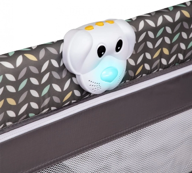 Boczne wejście na suwak umożliwia dziecku bezpieczne wchodzenie i wychodzenie, siatkowane boki zapewniają przepływ powietrza i dobrą widoczność. Stabilna rama bez ostrych krawędzi oraz system LockGuard chronią przed niepożądanym złożeniem. W zestawie znajdują się również elementy rozrywkowe, takie jak melodie i interaktywna zabawka, uchwyty do nauki wstawania oraz moskitiera dla spokojnego snu.